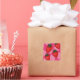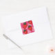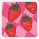 Pegatina Cuadrada Fresa Cuadrada Dibujada a Mano Rosa y Roja