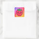 Pegatina Cuadrada Fresa sonriente Kawaii sobre el fondo degradado pa