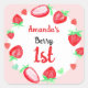 Pegatina Cuadrada Fresas primer cumpleaños berry primero