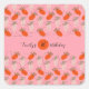 Pegatina Cuadrada Fresas Rosa Blanco Doodle Cumpleaños