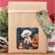 Pegatina Cuadrada Frisa de Bichon de Halloween con calabazas asustad