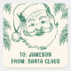 Kids christmas gift stickers featuring a retro cream background, a festive green doodle illustration of Santa Claus, and a handy text template for personalizing your to and from notes. These stickers add a cheerful and nostalgic touch to holiday gift wrapping, making every present unique for children this season. Add a special touch to your gifts with these adorable stickers.