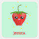 Pegatina Cuadrada Fruto de fresa monograma kawaii en turquesa