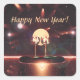 Pegatina Cuadrada Fuegos artificiales de Año Nuevo y champán