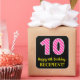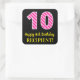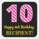 Pegatina Cuadrada Fun Pink Stripes "10": Feliz décimo cumpleaños + n