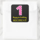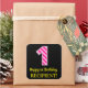 Pegatina Cuadrada Fun Pink Stripes "1": Feliz primer cumpleaños + no
