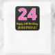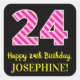Pegatina Cuadrada Fun Pink Stripes "24": Feliz cumpleaños número 24