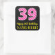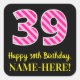 Pegatina Cuadrada Fun Pink Stripes “39”: Happy 39th Birthday + Name