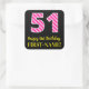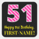 Pegatina Cuadrada Fun Pink Stripes “51”: Happy 51st Birthday + Name