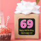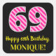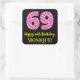 Pegatina Cuadrada Fun Pink Stripes "69": Feliz cumpleaños número 69