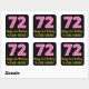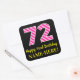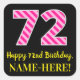 Pegatina Cuadrada Fun Pink Stripes "72": Feliz cumpleaños número 72
