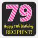Pegatina Cuadrada Fun Pink Stripes “79”: Happy 79th Birthday + Name