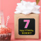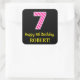 Pegatina Cuadrada Fun Pink Stripes "7": Feliz sétimo cumpleaños + No