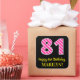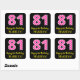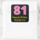 Pegatina Cuadrada Fun Pink Stripes "81": Feliz cumpleaños número 81