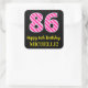Pegatina Cuadrada Fun Pink Stripes "86": Feliz cumpleaños 86 + nombr