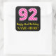 Pegatina Cuadrada Fun Pink Stripes "92": Feliz cumpleaños 92 + Nombr
