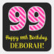 Pegatina Cuadrada Fun Pink Stripes "99": Feliz cumpleaños 99 + Nombr