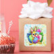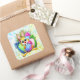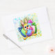 Pegatina Cuadrada Funny Bunny biting an Easter Egg