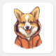 Pegatina Cuadrada Funny Corgi Usando Hoodie