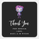 Gracias pegatinas con un lindo ilustracion. Monstruo Frankenstein con pelo rosado y púrpura y traje y corbata de dapper.