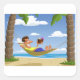 Pegatina Cuadrada Funny Man Relaxing in Beach Hammock