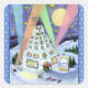 PEGATINA CUADRADA FUNNY SNOWMAN HOTEL, LUCES DEL NORTE Y PENGUINOS
