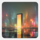Pegatina Cuadrada Futuristic Cityscape with Neon Reflections