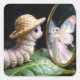 Pegatina Cuadrada Fuzzy Caterpillar Staring at a Fairy Butterfly