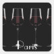Pegatina Cuadrada Gafas de vino con vino tinto en negro