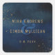 Este diseño de galaxia ética es perfecto para un boda moderno y caprichoso. El diseño presenta una galaxia de color azul marino con estrellas y un marco geométrico dorado.