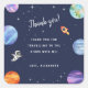 Gracias a sus maravillosos invitados con este lindo tema del espacio exterior cumpleaños gracias pegatina! Cuenta con ilustraciones acuáticos de la galaxia, estrellas, planetas, un barco de cohetes y un astronauta. Personalízalo con sus detalles y utilice la herramienta de edición para cualquier ajuste adicional en el tamaño y la posición del tipo de letra. No dude en ponerse en contacto con nosotros en Zazzle si necesita ayuda para la personalización.