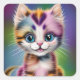 Pegatina Cuadrada Gatito a rayas sonriente, dulce y adorable