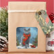Pegatina Cuadrada Gato azul ruso en Navidades de nieve