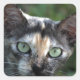 Pegatina Cuadrada Gato blanco gris marrón con ojos verdes