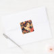 Pegatina Cuadrada Gato calico con flores estética japonesa