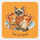 Pegatina Cuadrada Gato con calabaza para Fiesta de Acción de Gracias