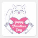 Pegatina Cuadrada Gato con corazón feliz Día de San Valentín
