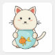 Pegatina Cuadrada Gato con pez en vidrio