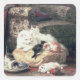 Pegatina Cuadrada Gato con sus gatitos en un cojín