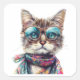 Pegatina Cuadrada Gato Cool con Lentes