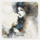 Pegatina Cuadrada Gato de Chica japonés con fantasía