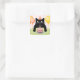 Pegatina Cuadrada Gato de cumpleaños con pastel y globos