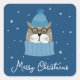 Nuestro Gato de Navidades Agradables, en los cómodos Knits, Pegatinas azules con copas de nieve... ¡con el ilustracion de un adorable gatito de hipster gris vestido con cómodos tejidos de invierno, entre ellos un gorra y una bufanda rodeados de copos blancos de nieve sobre un fondo azul profundo! El texto dice "Feliz Navidad" y se puede actualizar con un saludo personal para crear una pegatina de navidad personalizado.