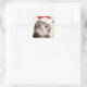 Pegatina Cuadrada Gato de tabby doméstico con gorra de Navidades roj