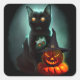Pegatina Cuadrada Gato de vampiros y mago calabaza Halloween Surreal