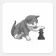 Pegatina Cuadrada Gato en ajedrez con pieza de ajedrez Bishop