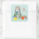 Pegatina Cuadrada Gato gracioso enredado en Yarn