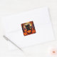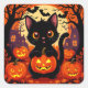 Pegatina Cuadrada Gato negro lindo con calabazas de Halloween