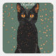 Pegatina Cuadrada Gato negro místico con ojos Naranjas y Purpurina