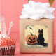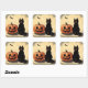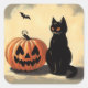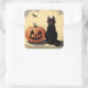 Pegatina Cuadrada Gato negro retro Halloween y calabaza